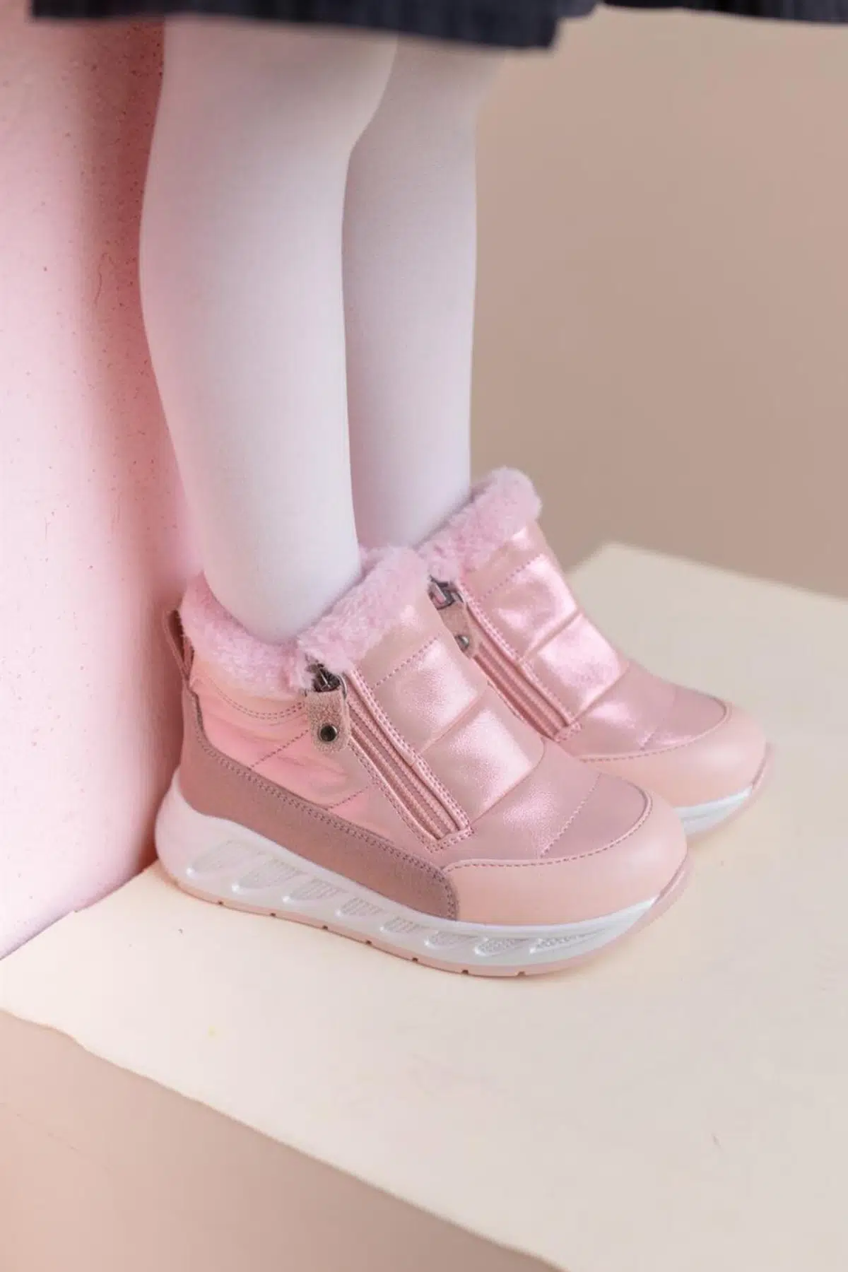 Bonthe Çift Fermuarlı İçi Peluş Kürklü Paraşüt Kumaş Kız Çocuk Bot