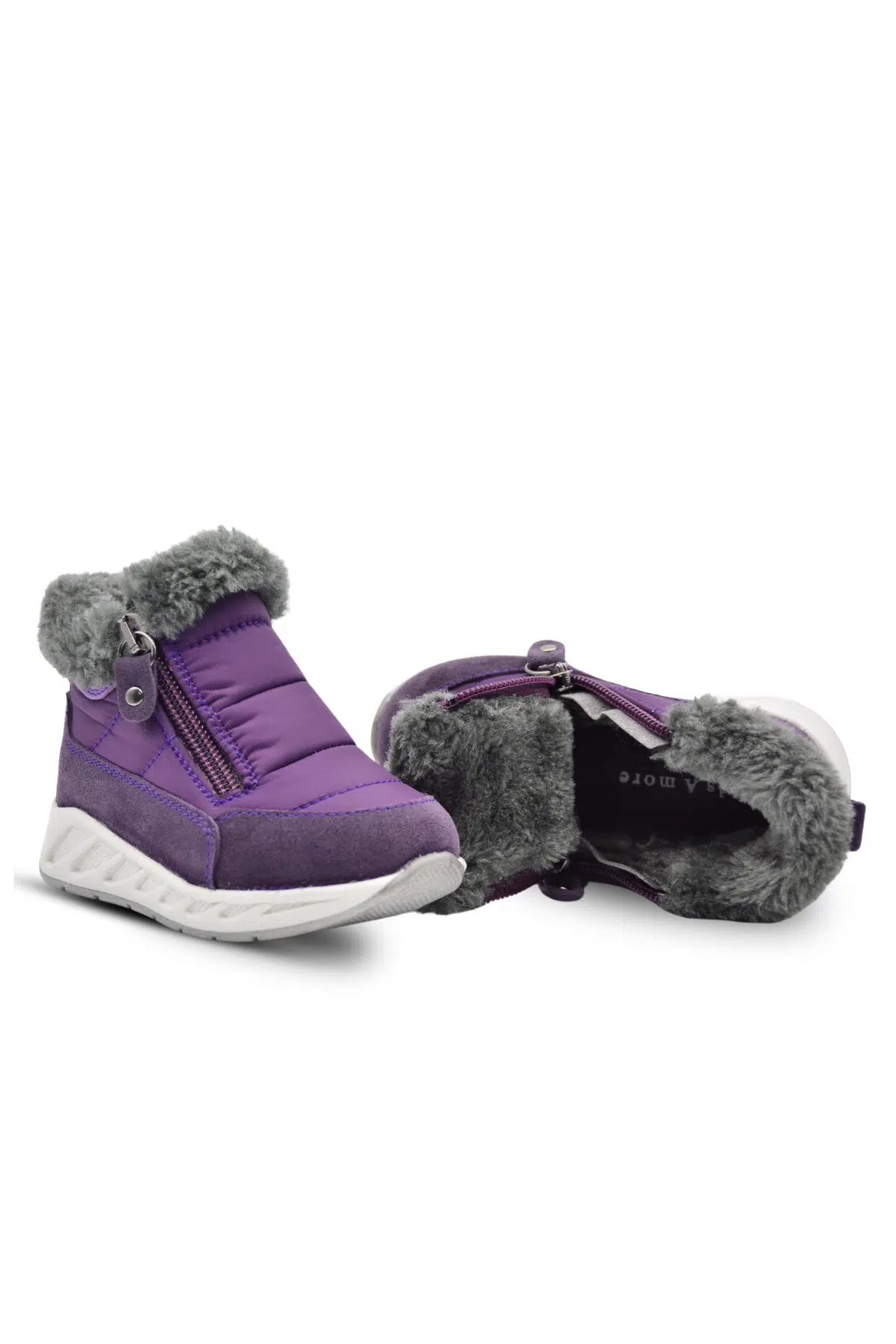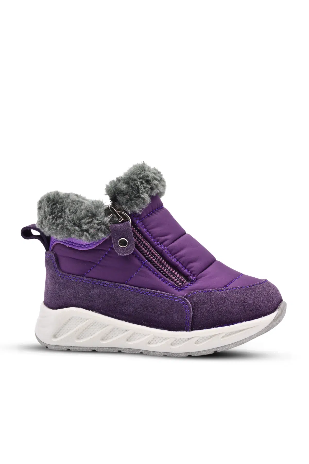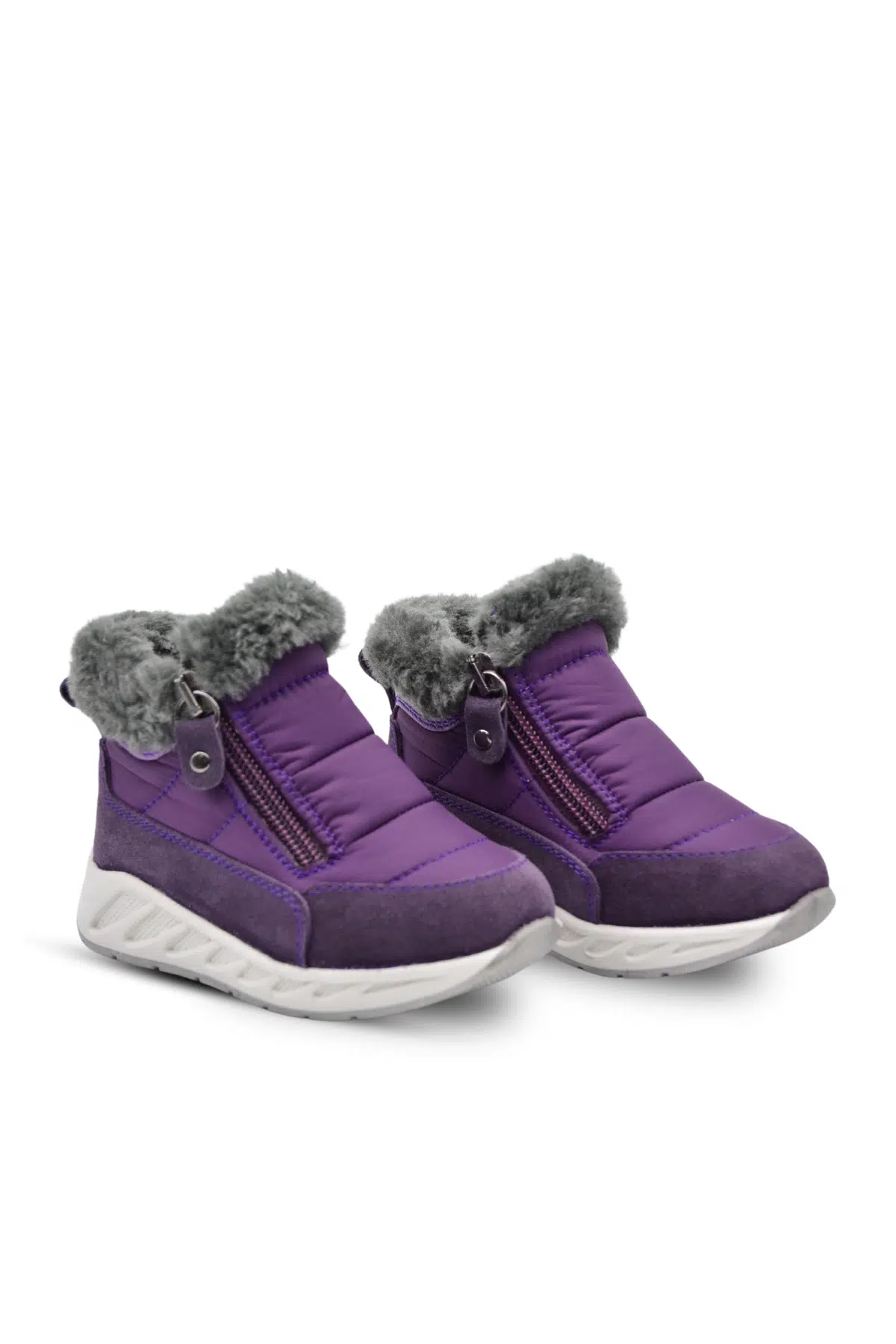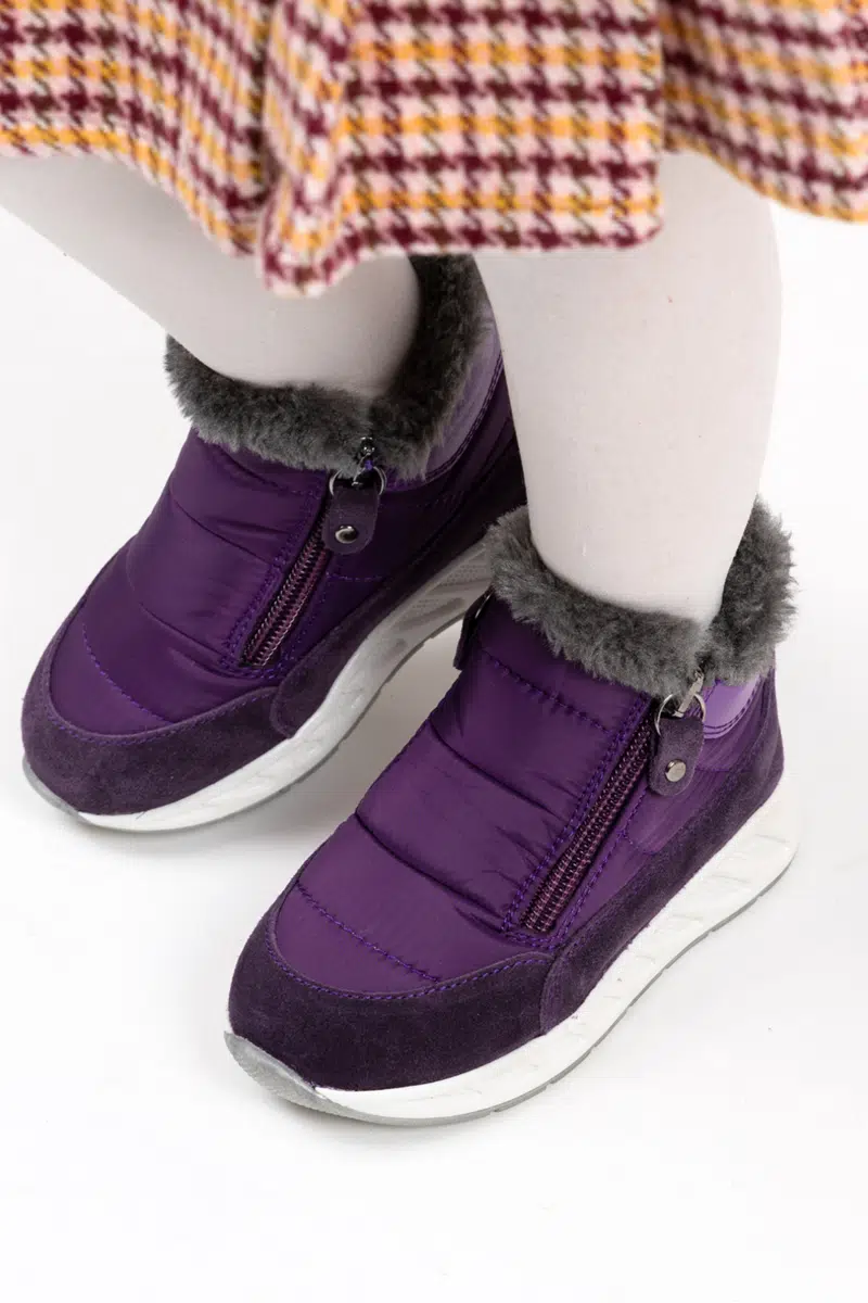 Manarola Çift Fermuarlı İçi Peluş Kürklü Paraşüt Kumaş Kız Çocuk Bot Mor