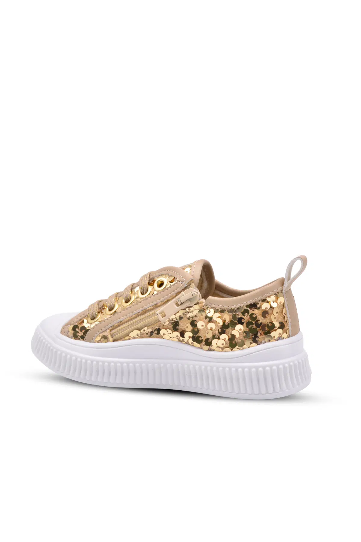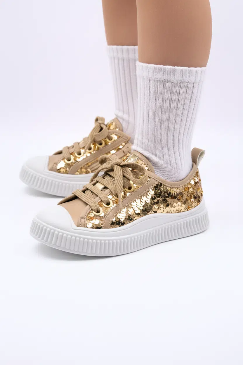 | Etiketler | Sweet Kız Çocuk Pullu ve Bağcıklı Altın Renk Sneaker |