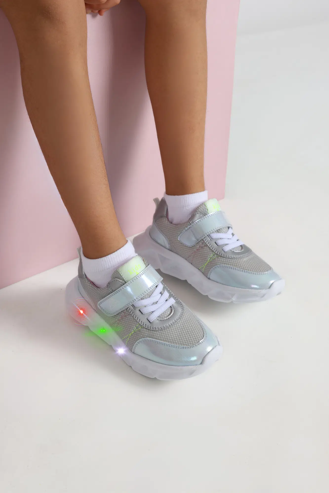 Valeria Simli Air File Ve Vegan Deri Işıklı Taban Kız Çocuk Spor Ayakkabı Buz Rengi