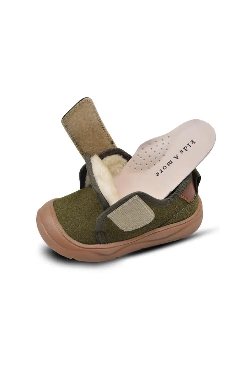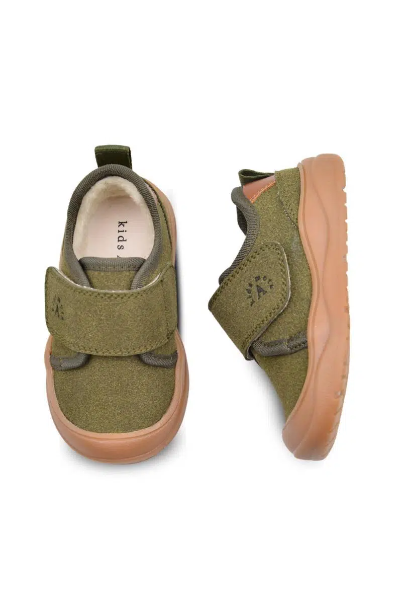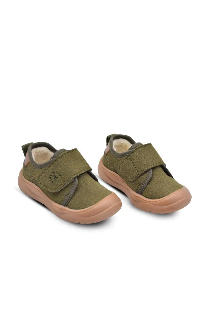 Wide Tek Cırtlı İçi Peluş Kürklü Anatomik Erkek Bebek Ayakkabısı Haki